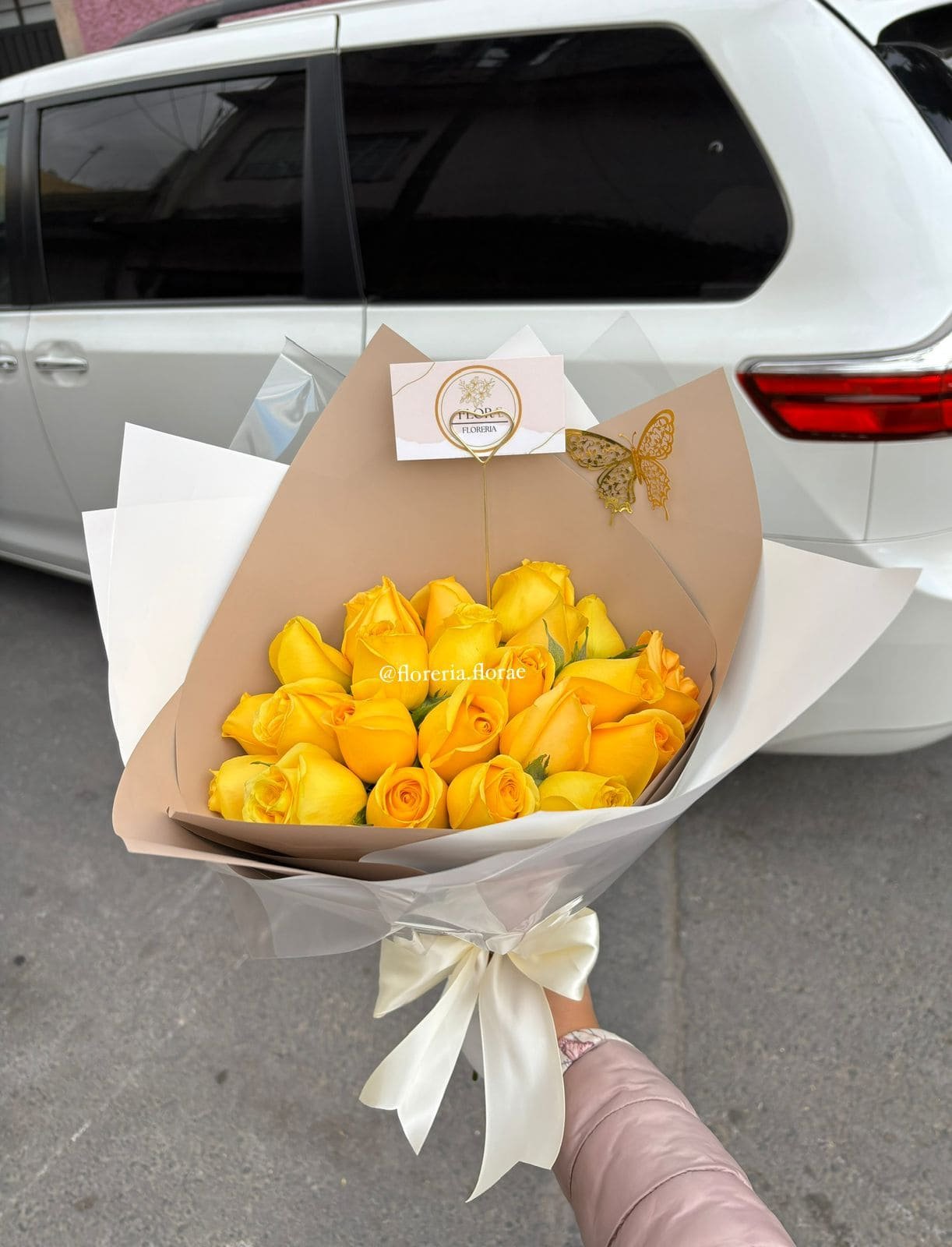 Ramo de 24 rosas amarillas + Mariposa + Dedicatoria + Envío gratis en CDMX y Estado de México (aplican restricciones por zona).